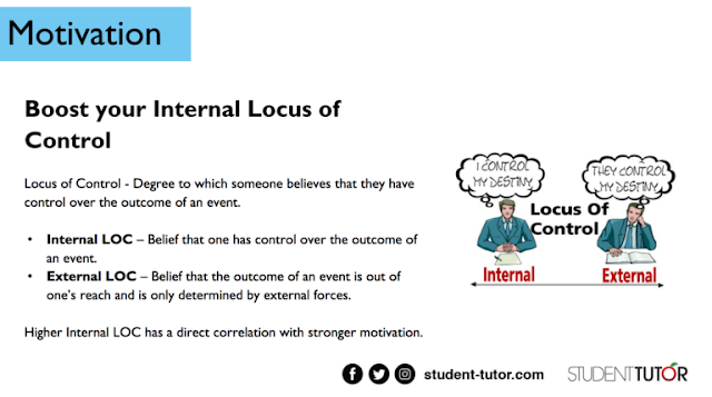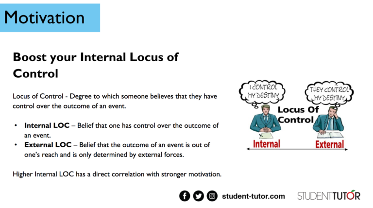 Those with an external locus of control believe that external forces, like luck or the schooling system, determine their outcomes. This lack of responsibility results in lower motivational levels and productivity.